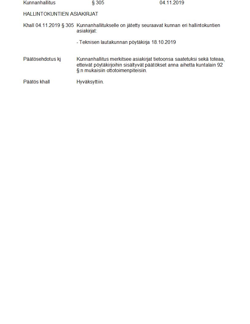 Pöytäkirja 04.11.2019/Pykälä 305