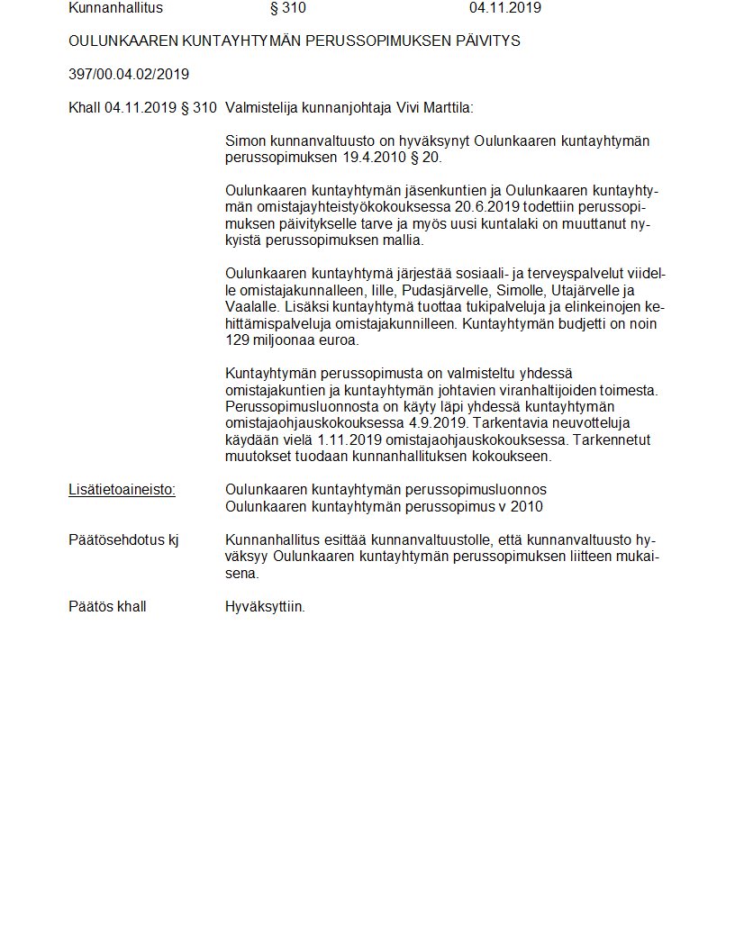 Pöytäkirja 04.11.2019/Pykälä 310